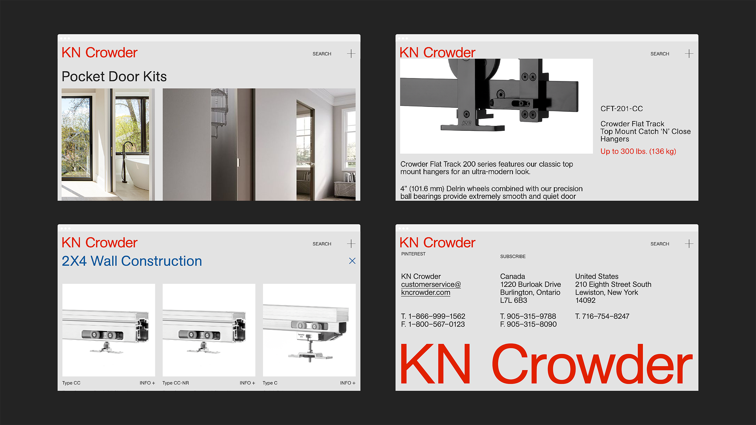 A refreshing new visual identity for KN Crowder — leaders in the design and manufacturing of architectural sliding door and entranceway hardware.